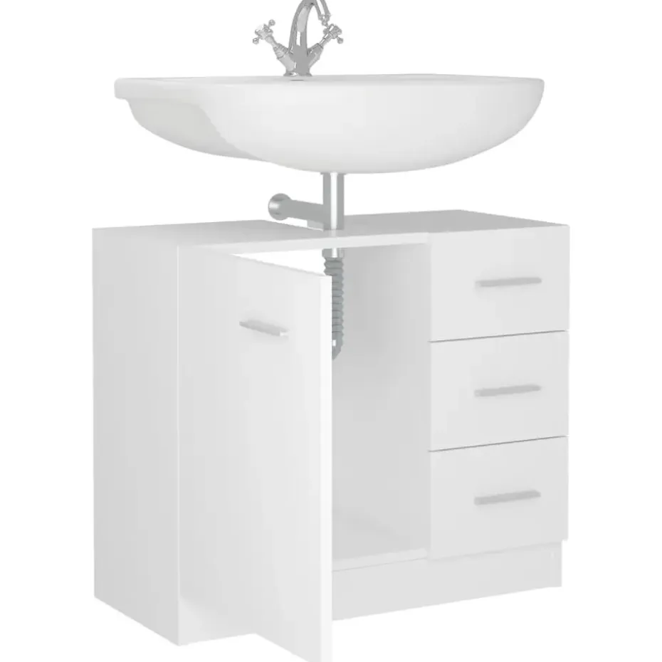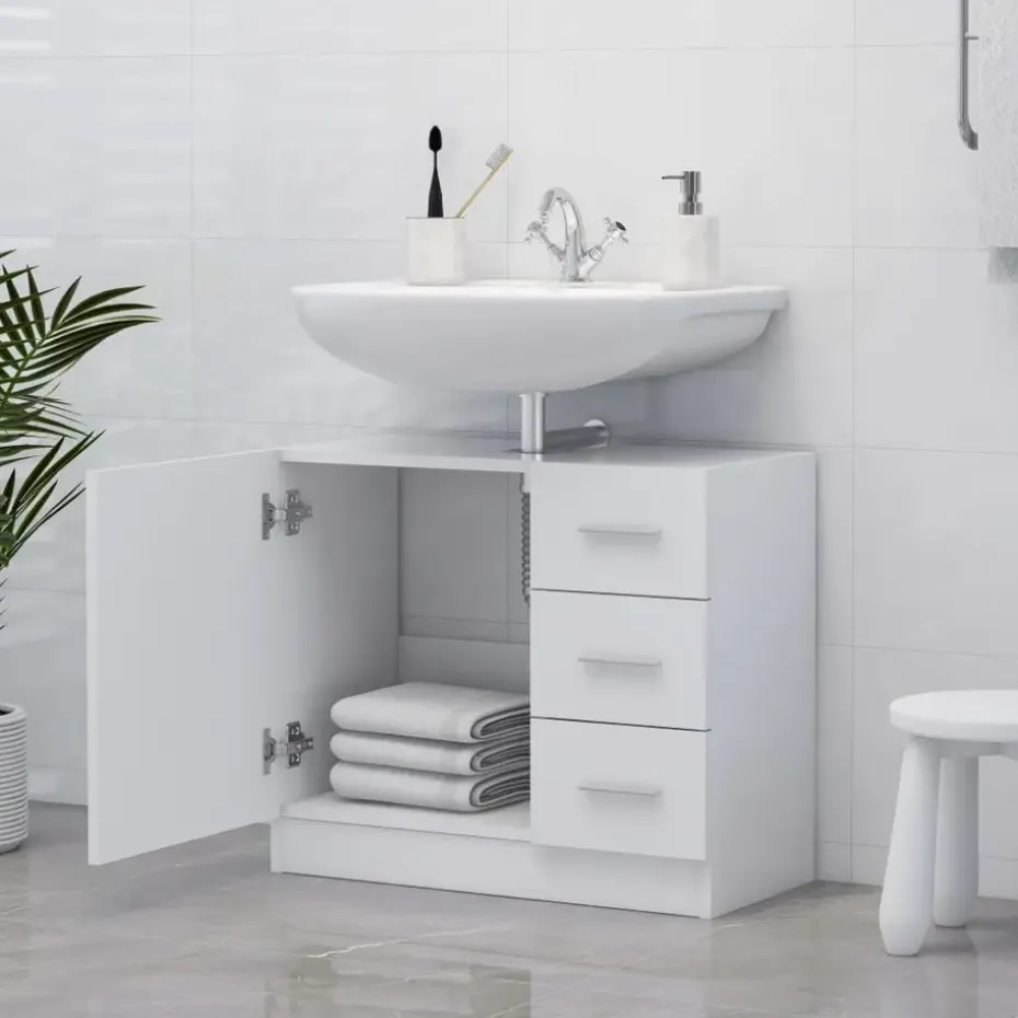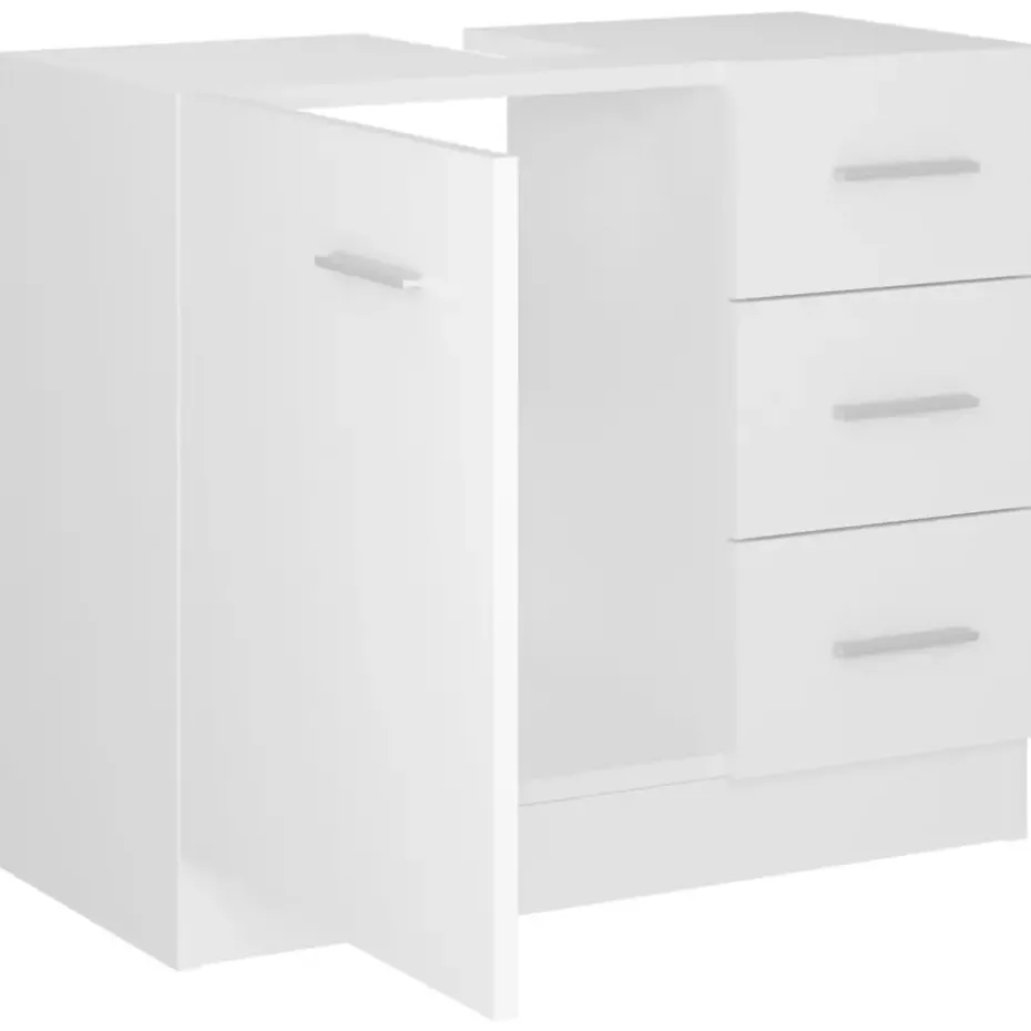 Deze kast is gemaakt van bewerkt hout, waardoor hij stevig en stabiel is. De opbergkast heeft 1 vak en 3 lades, waardoor je verschillende opbergopties en extra ruimte hebt om spullen in je badkamer op te bergen. Het blad van het kastje is ideaal om een wasbak te plaatsen. Bovendien is de kast eenvoudig te reinigen met een vochtige doek.