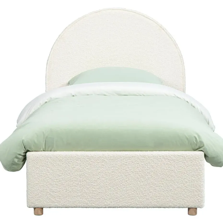 Op zoek naar een bed dat niet alleen lekker slaapt, maar er ook leuk uitziet? Dit Vipack bed is bekleed met een zachte witte bouclé stof en heeft een opvallend maanvormig hoofdbord. Dat maakt het bed extra vrolijk en zorgt meteen voor een speelse sfeer in de slaapkamer.