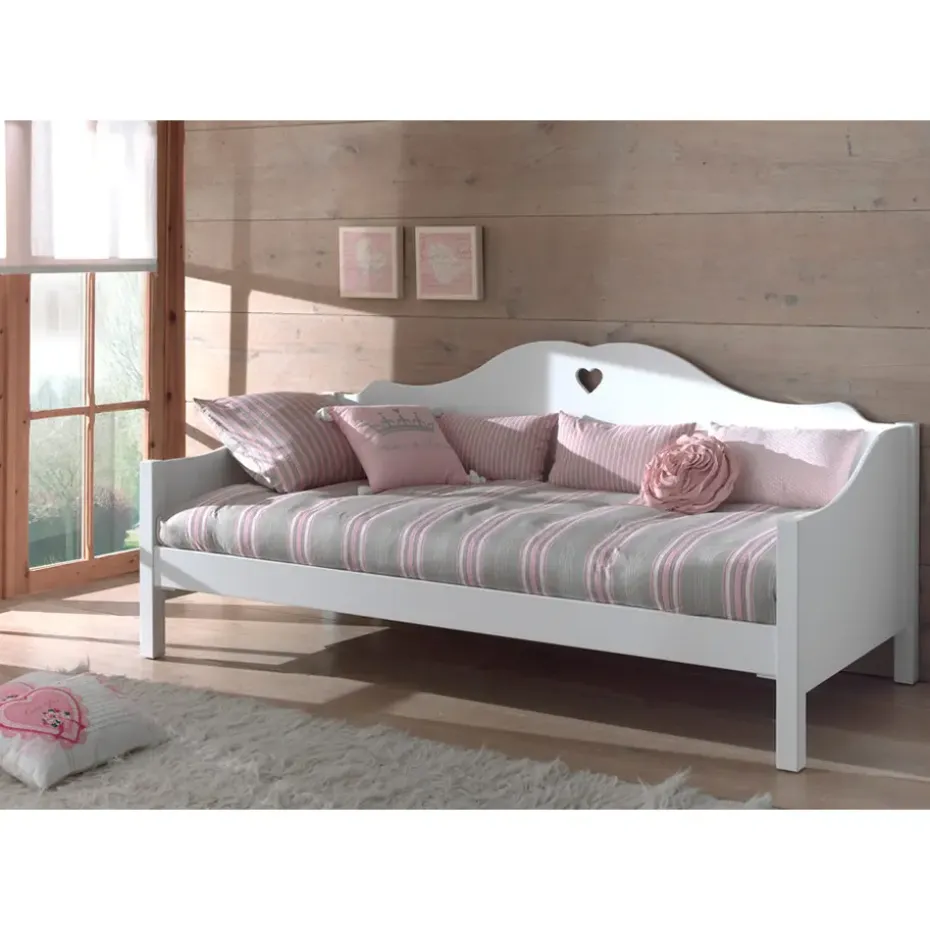 Vipack kajuitbed Amori heeft prachtige golvende vormen en een open hart. Het kajuitbed is volledig vervaardigd uit E1 MDF en massief grenen.Deze combinatie zorgt voor een kwalitatief en erg sterk geheel. Het volledige bed is wit gelakt. De matrasmaat van dit kajuitbed is standaard (90×200 cm). Een kajuitbed is een bijzonder leuke aanvulling op de slaapkamer en kan overdag fungeren als luxe sofa. Voeg er enkele sierkussens aan toe en je hebt een echte eyecatcher. De Amori-collectie is een zeer uitgebreide romantische collectie met de mogelijkheid om zelf een complete kinder- of tienerkamer samen te stellen. Dit bed is bijvoorbeeld uit te breiden met kledingkast en bureau.
