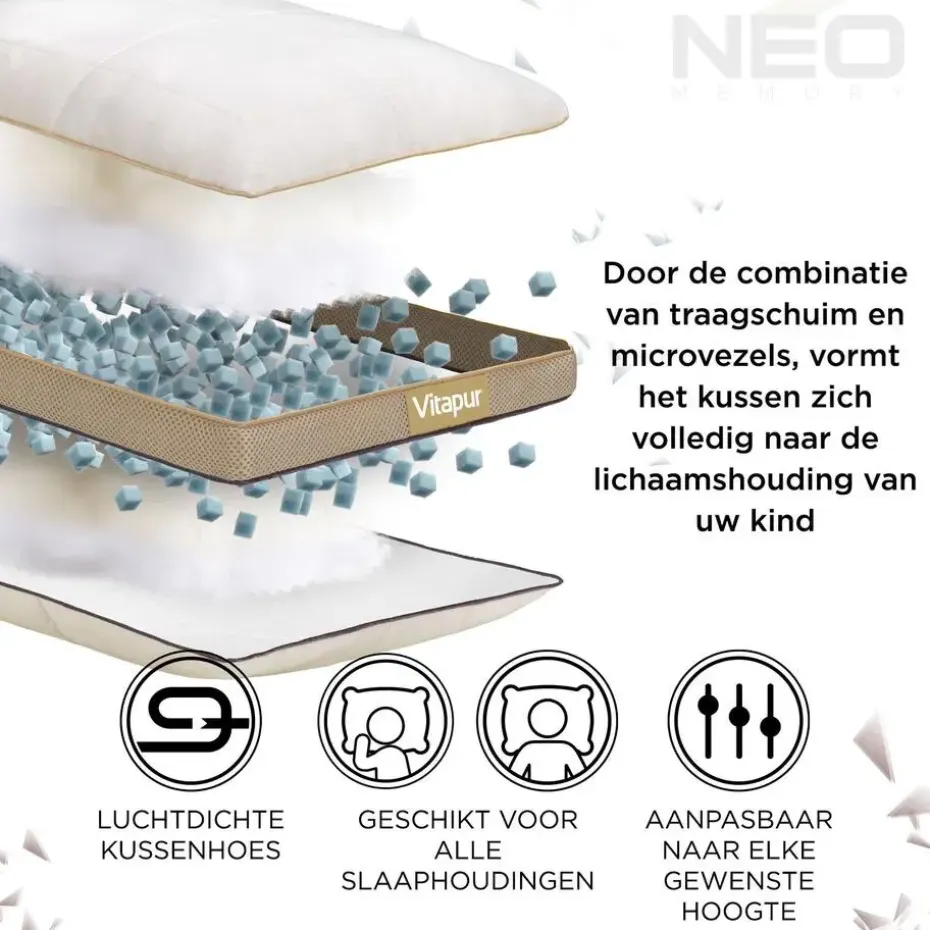 Vitapur Kinderkussen - Traagschuim vulling - 40x60 cm - 2 stuks