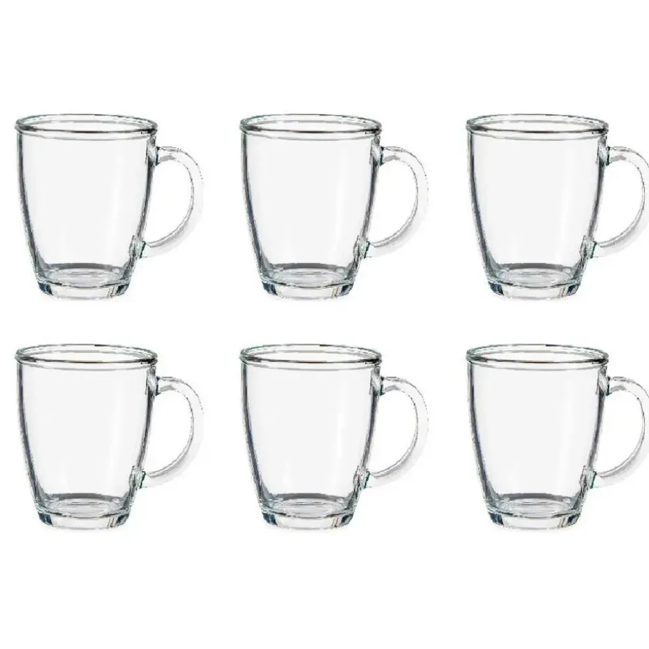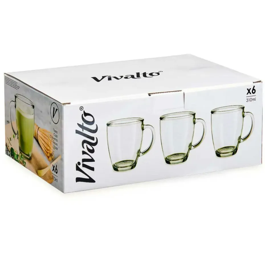 Vivalto Design koffie of thee glazen met oor, set van 6x stuks. Ideale koffie/thee bekers vanwege het verdikte glas en stevig handvat. Inhoud: 310 ml. Materiaal: transparant glas. Geschikt voor de vaatwasser.