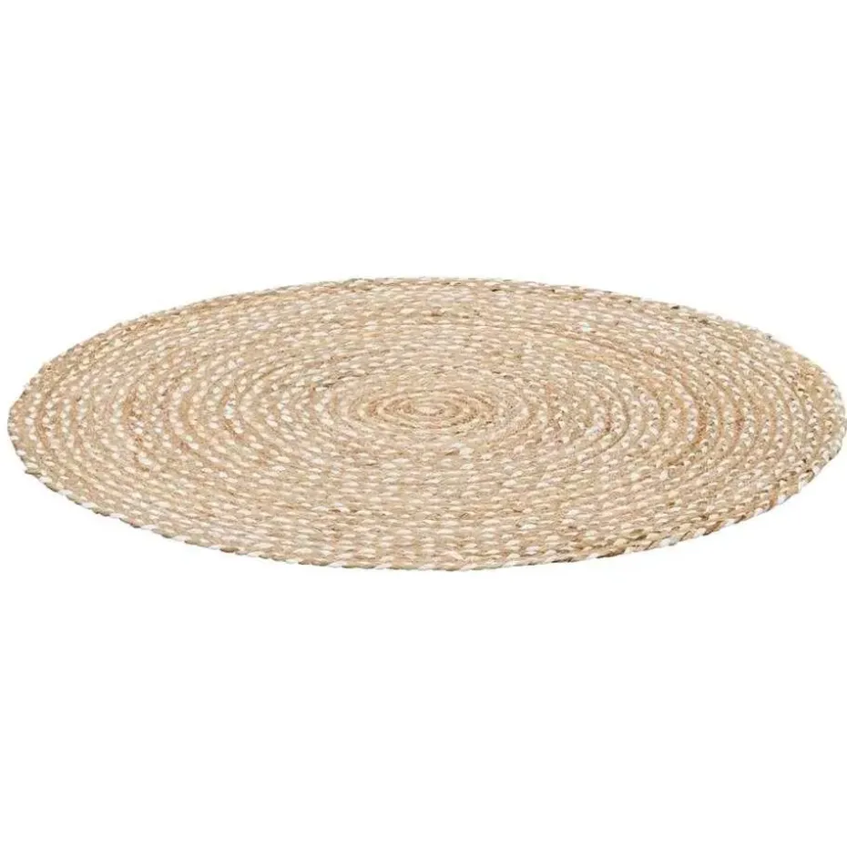 Het vloerkleed heeft een diameter van 100 cm en is gemaakt van jute.