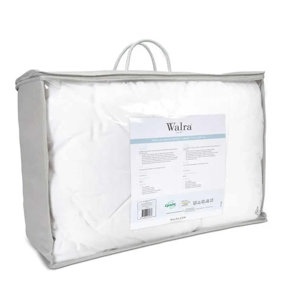 Walra dekbed Milaan is het gehele jaar door te gebruiken. Doordat het is opgebouwd uit verschillende lagen is Milaan geschikt voor alle seizoenen. Behaaglijk warm in de winter en lekker koel in de zomer. Het stiksel in golfpatroon geeft het dekbed een optimaal volume en is blijvend veerkrachtig. Het dekbed heeft een goede warmte-isolatie en is anti-allergisch. U kunt het dekbed wassen op 60 graden en drogen op lage temperatuur in de trommel. Schudt het dekbed dagelijks licht op en lucht regelmatig. Dekbed Milaan is verpakt in een handige luxe Walra beschermtas.