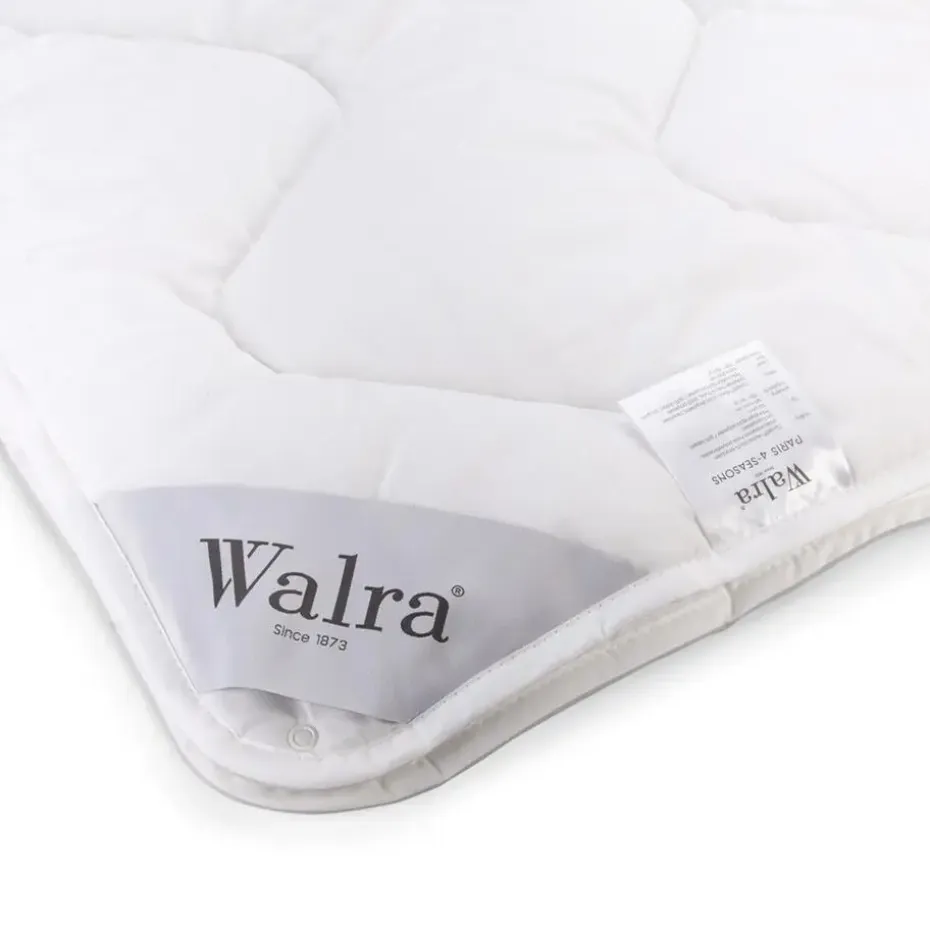 Walra dekbed Paris is een voordelig 4-seizoenen dekbed. Doordat het is opgebouwd uit verschillende lagen is Paris geschikt voor alle seizoenen. Behaaglijk warm in de winter en lekker koel in de zomer. U voegt de delen eenvoudig samen door middel van onopvallende drukknopen. Het stiksel in golfpatroon geeft het dekbed een optimaal volume en is blijvend veerkrachtig. Het dekbed heeft een goede warmte-isolatie en is anti-allergisch. U kunt het dekbed wassen op 60 graden en drogen op lage temperatuur in de trommel. Schudt het dekbed dagelijks licht op en lucht regelmatig. Dekbed Paris is verpakt in een handige luxe Walra beschermtas.