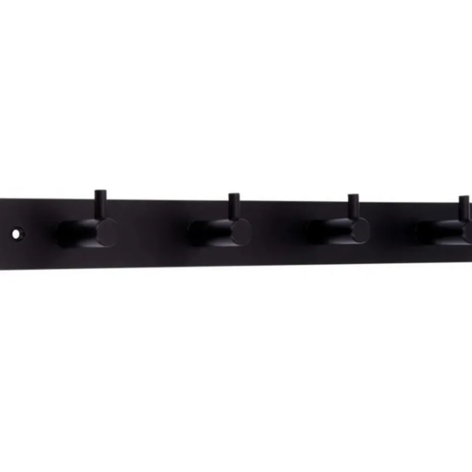 Wandkapstok – zwart – met 4 jashaken – hoogwaardig metaal – 4,3 x 32,2 cm – kapstokhaken. Deze zwarte wandkapstok met 4 jashaken is de perfecte combinatie van stijl en functionaliteit. Gemaakt van metaal en afgewerkt in een moderne zwarte kleur, biedt deze kapstok een praktische oplossing voor het ophangen van jassen, tassen of accessoires. Met compacte afmetingen van 4,3 x 32,2 cm is hij ideaal voor gebruik in de hal, slaapkamer of badkamer. Het strakke ontwerp past moeiteloos in verschillende interieurstijlen. Deze wandkapstok is een praktische en stijlvolle toevoeging aan je ruimte.
