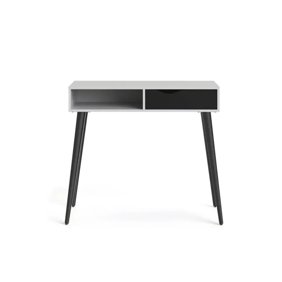 Wandtafel Delta is wit met mat zwart en heeft een afmeting (hxbxd) van 89,8x103x43,5 cm. Wandtafel Delta is een stijlvolle en elegante sidetable. Delta is elegant met een moderne vormgeving. De combinatie van wit met zwart straalt rust uit. De schuin uitstaande poten geven deze wandtafel een elegante look.