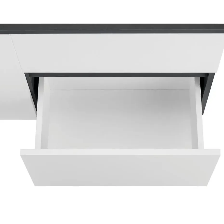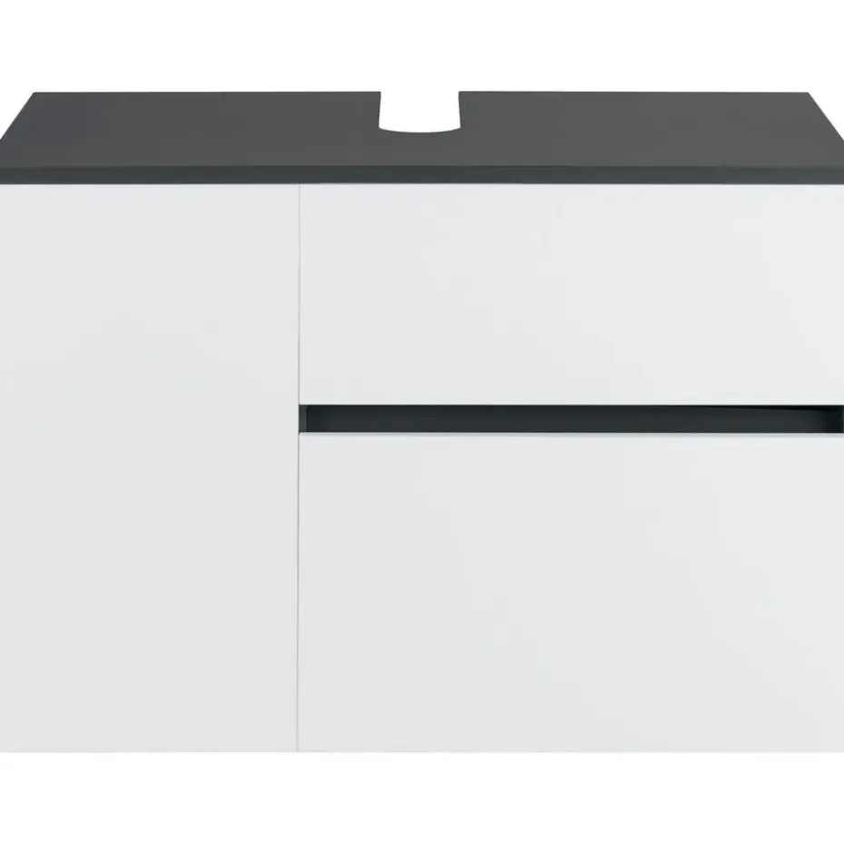 Het badmeubel met matte fronten geeft je badkamer een modern tintje. Achter de deur en klep met push-open functie zit handige opbergruimte voor verschillende gebruiksvoorwerpen. Het badmeubel heeft ook een ruime lade.