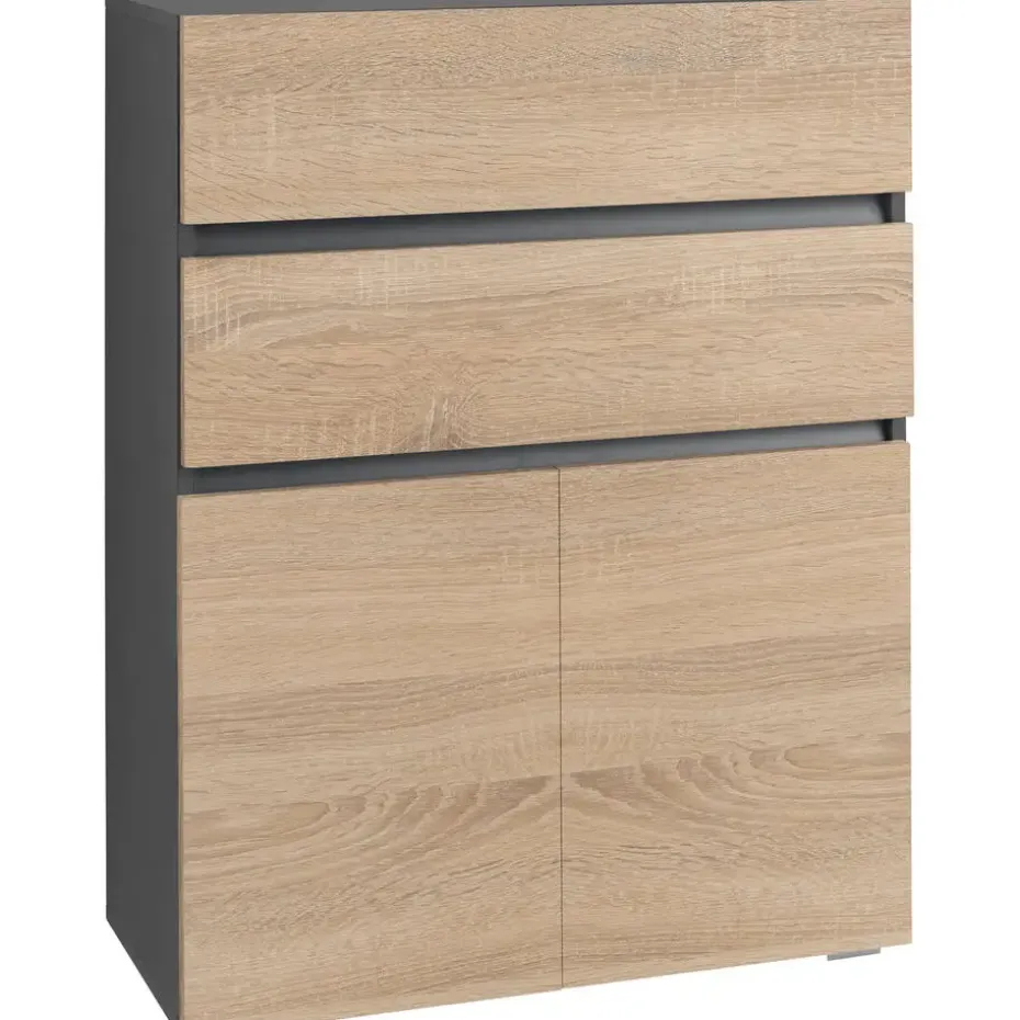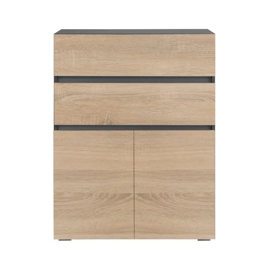Het greeploze ontwerp van het midi badkamermeubel bespaart ruimte en houdt je badkamer netjes. De puristische look van dit opbergmeubel is het resultaat van een hoogwaardige afwerking en interessante uitsparingen. De monochrome kleur maakt dit meubel een makkelijke toevoeging aan je huis en kan gecombineerd worden met verschillende inrichtingsstijlen. De onderhoudsvriendelijke oppervlakken maken schoonmaken een fluitje van een cent. Achter de twee deuren kun je schoonmaakproducten opbergen. Twee lades bieden extra opbergruimte.