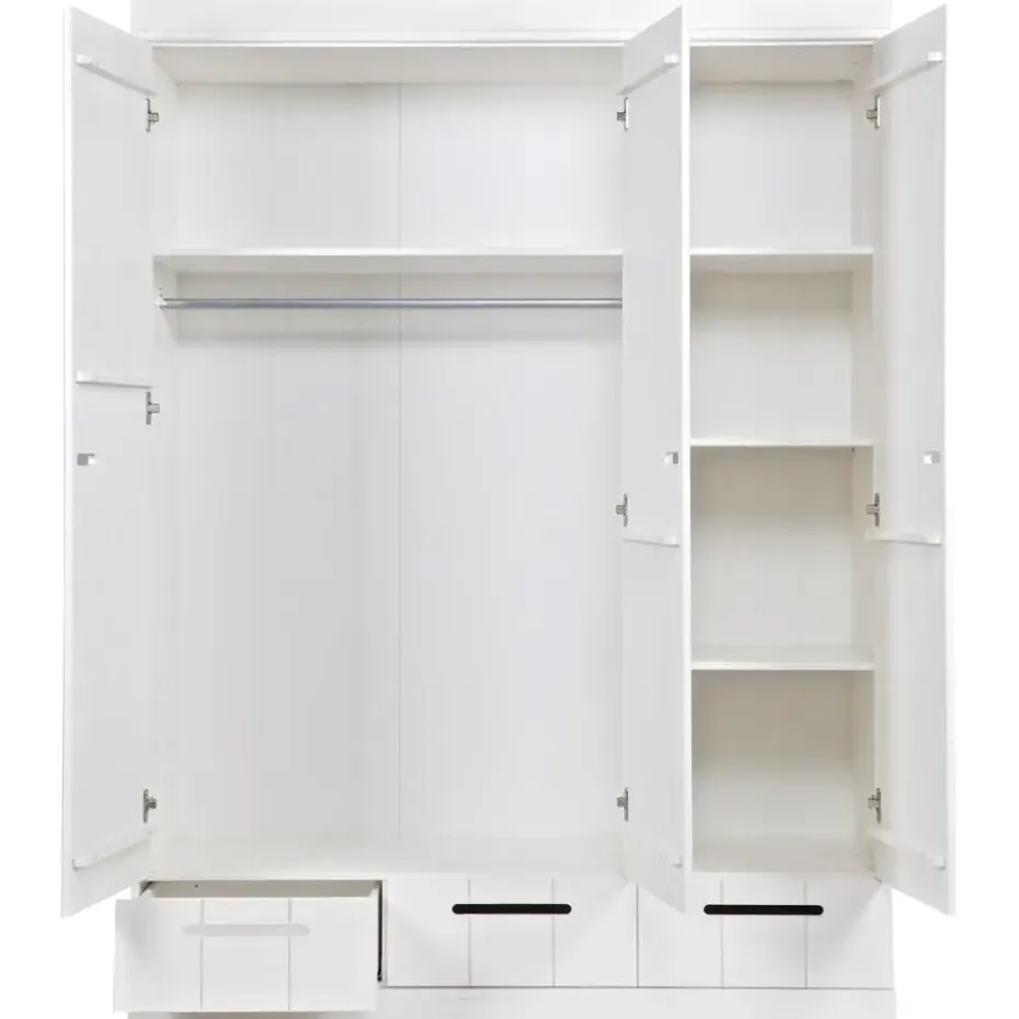 Deze stoere basic kast komt uit de collectie van WOOOD. De 3-drs kast met 3 handige lades zijn voorzien van stevige, metalen ladegeleiders. De romp van de kast is gemaakt van massief grenenhout en de binnenzijde is voorzien van melamine legplanken, praktisch met schoonmaken!