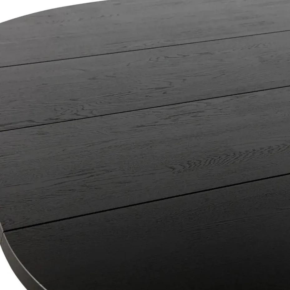 De eikenhouten meubelen uit onze collecties zijn afkomstig van FSC-gecertificeerde leveranciers en worden op diverse manieren behandeld. De eettafel is voorzien van een zwarte beits/lak.