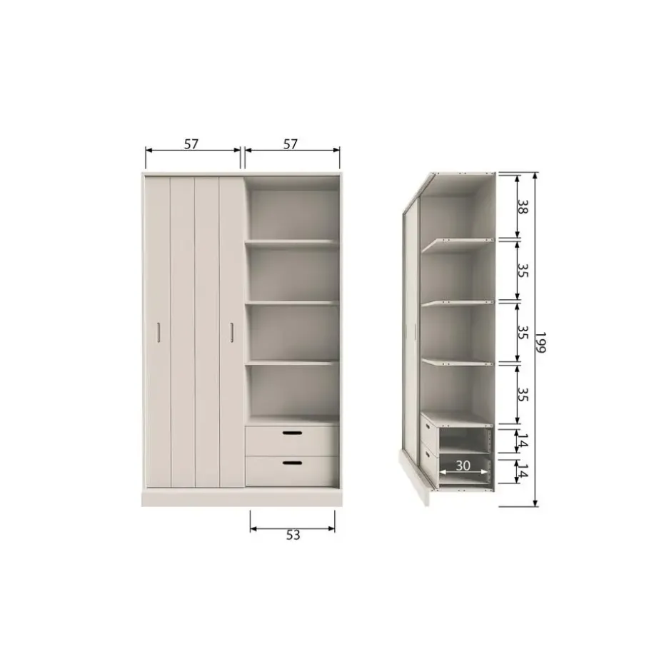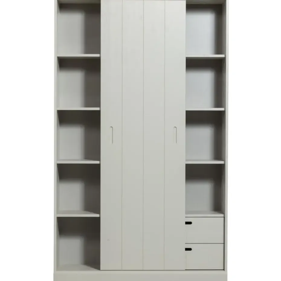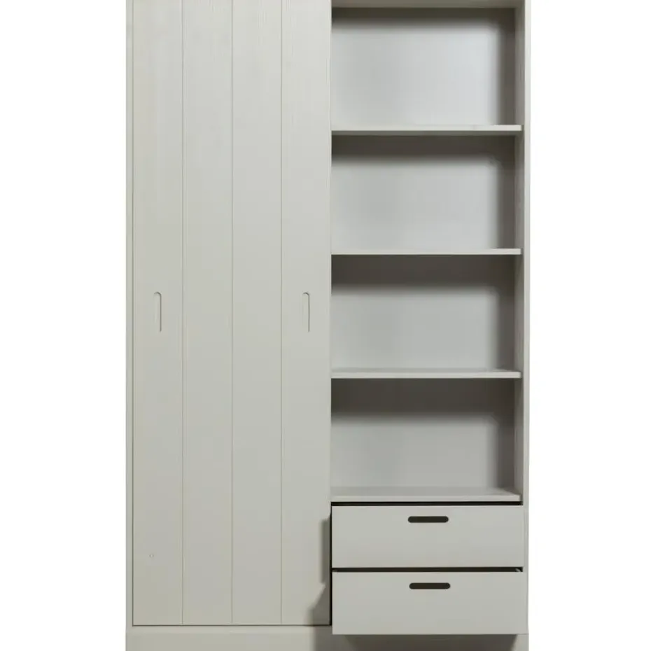 De Mila schuifdeurkast is vervaardigd uit geschuurd grenenhout en afgewerkt in de kleur dust. Het grenenhout is afkomstig van een FSC-gecertificeerde leverancier. Onze grenenhouten meubelen worden op verschillende manieren behandeld: geschuurd grenen is glad afgewerkt, terwijl geborsteld grenen een meer doorleefde uitstraling heeft. Voor een robuustere look wordt het grenenhout band gezaagd. Kenmerkend voor grenenhout zijn de zichtbare vlam- en nerftekeningen.