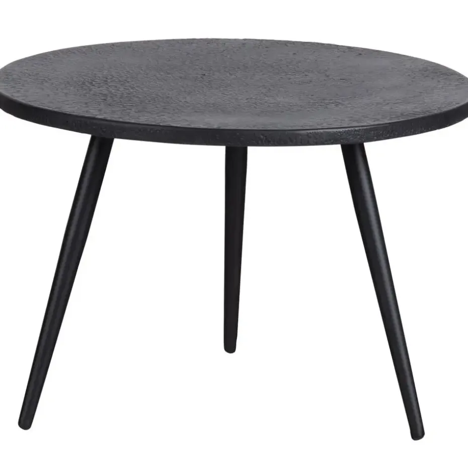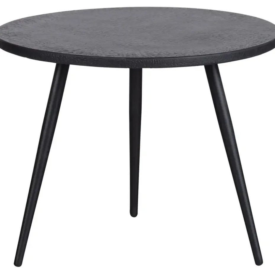 De tafelbladen zijn gemaakt van multiplex hout, afgewerkt met een metalen coating die zorgt voor een stevige en duurzame toplaag. De slanke poten zijn vervaardigd uit matzwart gelakt metaal, wat de tafels een moderne en minimalistische uitstraling geeft. Let op: deze tafels zijn niet geschikt voor gebruik buitenshuis.