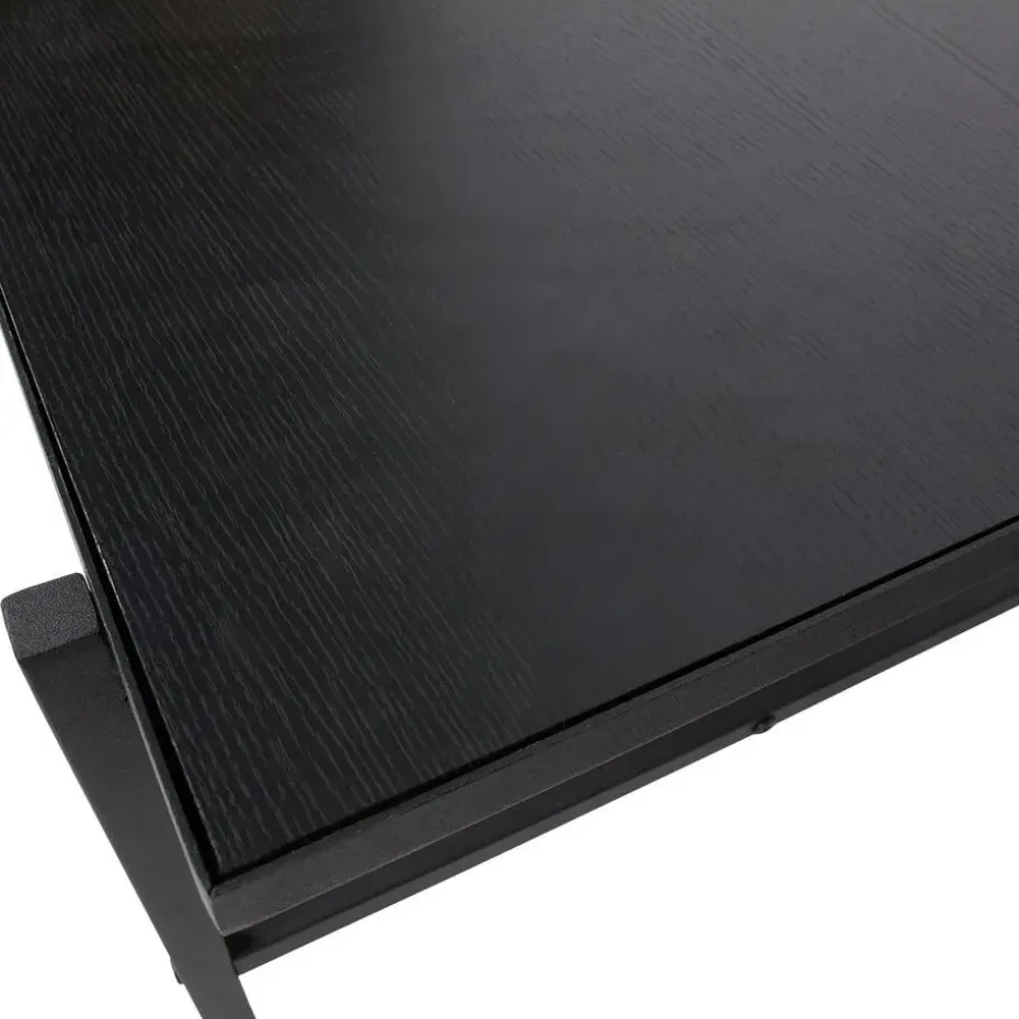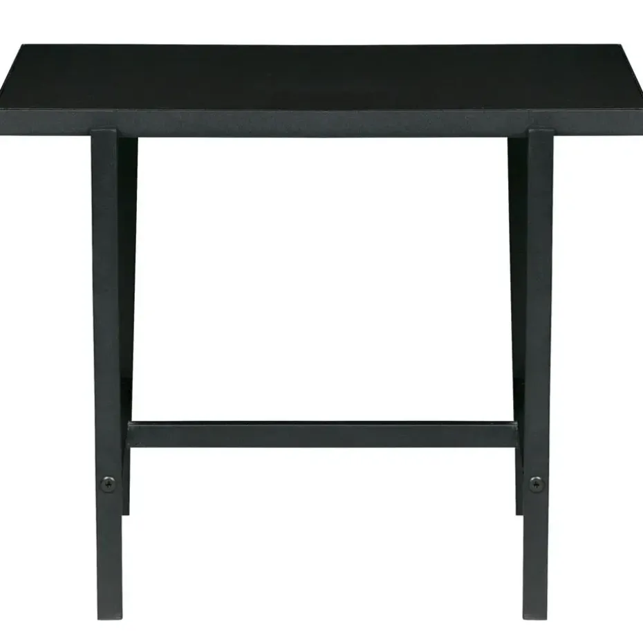 De Turn Around bijzettafel heeft stalen buispoten die zijn afgewerkt met een diepzwarte poedercoating RAL9005 ruw mat. De buispoten steken 2 cm uit, terwijl het tafelblad aan de andere zijden 7,5 cm uitsteekt. Dit ontwerp zorgt voor een robuuste uitstraling die zowel modern als industrieel is.