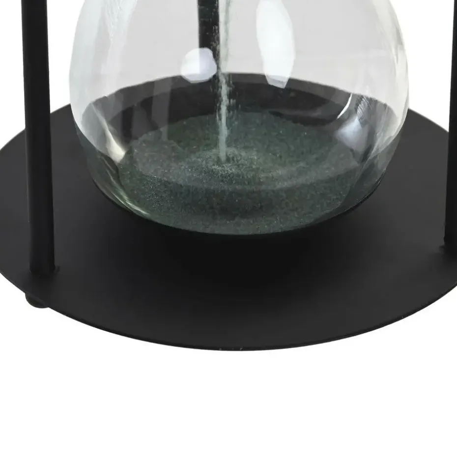 Zandloper cilinder Timer in de kleur zwart en zwart zand . Dit artikel kan ter decoratie of tijdsmeting gebruikt worden. Eenheid: 1,5 minuten. Afmetingen: D10,5 x H18,5 cm. Materiaal: glas.