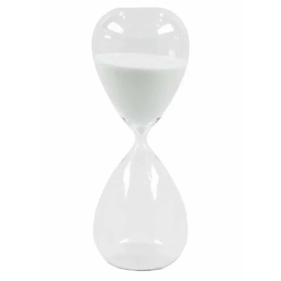 Decoratie zandloper wit zand 20 cm. Glazen zandloper met wit zand.
