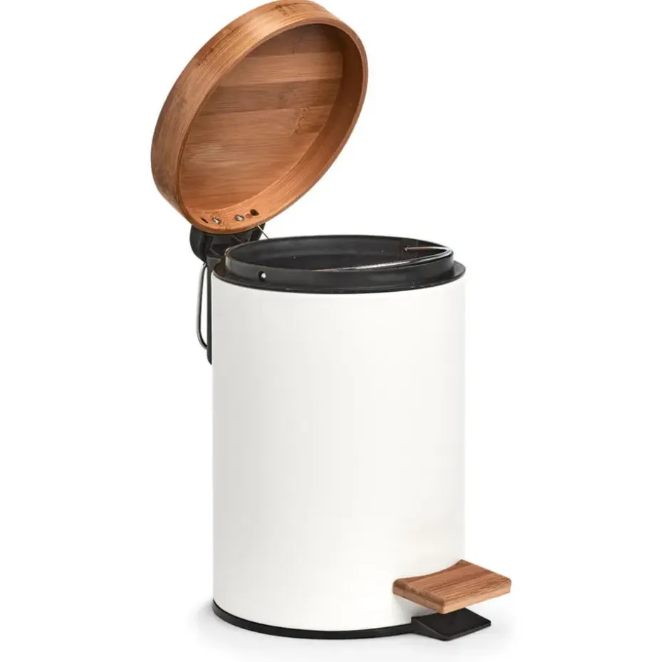 Pedaalemmer Zeller – wit – 3 liter – Metaal en bamboe – Scandinavisch design