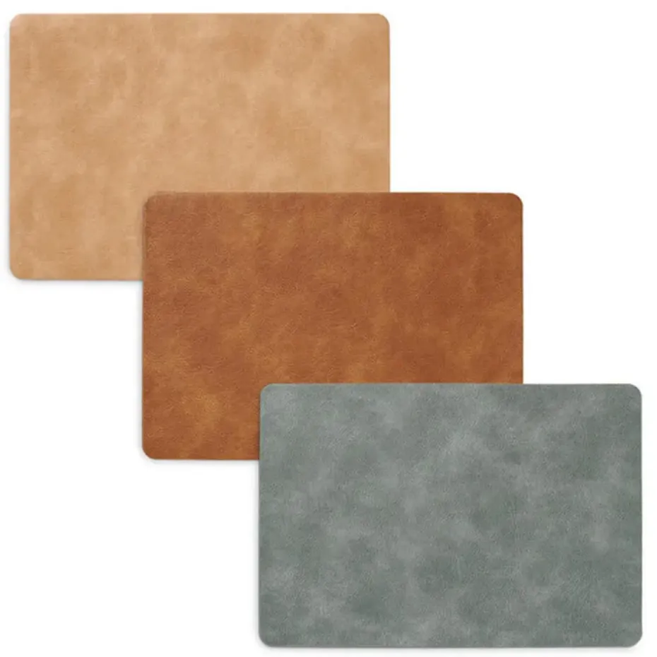 Placemats gemaakt van slijtvast imitatieleer in de kleur grijs. De decoratieve placemats met trendy design beschermen je tafel tegen vuil en krassen. Eenvoudig schoon te maken met een vochtige doek. Materiaal: kunstleer. Afmeting: ca. 45 x 30 cm.